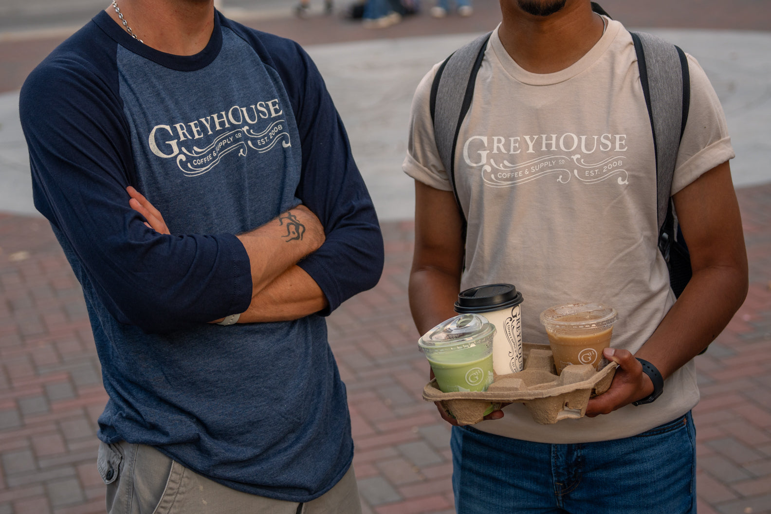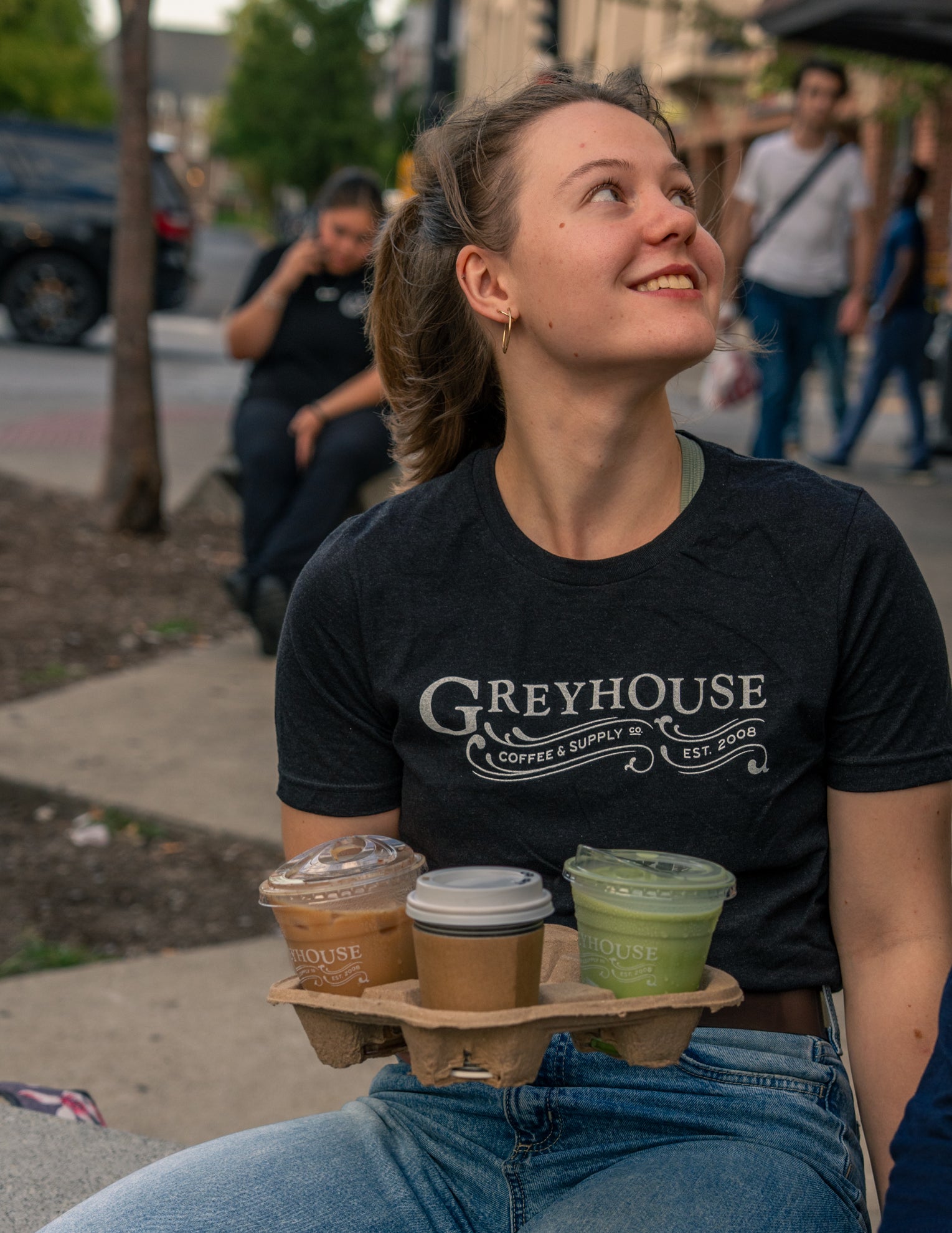 These hand-stamped mugs feature Greyhouse written in black and white tile to resemble the black and white tiles found at all three locations.